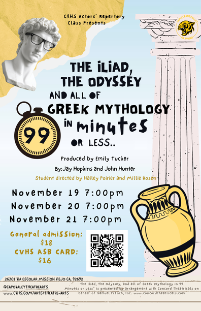 Actors' Repertory Class: Auditions necessary for all current Drama students who want to reach the top level acting class at Capo. Pre-requisite is Drama 1, Advanced Drama, or a combination of the two, or extensive theatrical training at a different high school or theatre. More information on what to prepare, click the "Actors' Rep" tab to the left, and email Mrs. Tucker. Freshmen are not allowed to audition for this class. There is one public performance required in this class, which is a student-produced show in the Blackbox Theatre. Additionally, students will learn about theatre theorists and playwrights from around the world, dive into Shakespeare, and further theri studies in character analysis and audtion preparation.